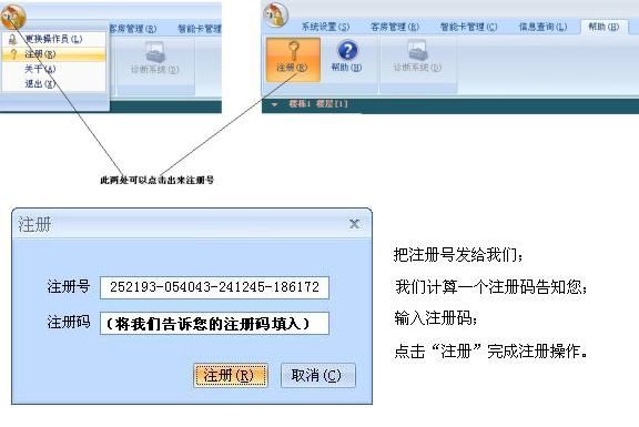常有客户在使用摩力客房管理系统不久后,发现发卡器提示需注册,原因是原注册码为我司安装设置人员使用的临时注册码,有一定的时效性,如遇此问题,可向经销商或厂家拿注册码即可。